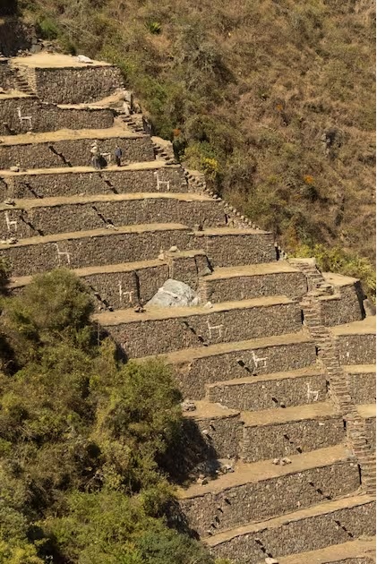 There are 22 images on these stones with figures known as “Flames of the Sun”, arranged on 15 platforms towards the snowy Quory. Hauyrachina . Choquequirao has a large system of platforms, a characteristic of Inca constructions, which helped in the agricultural use of the hillsides, and which currently, to the eyes of visitors, look like floors carpeted in green by the vegetation of the zone.